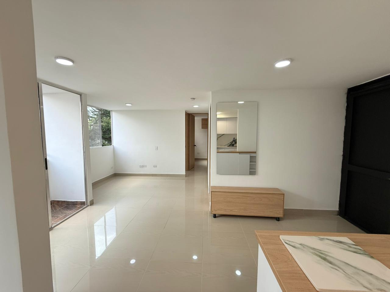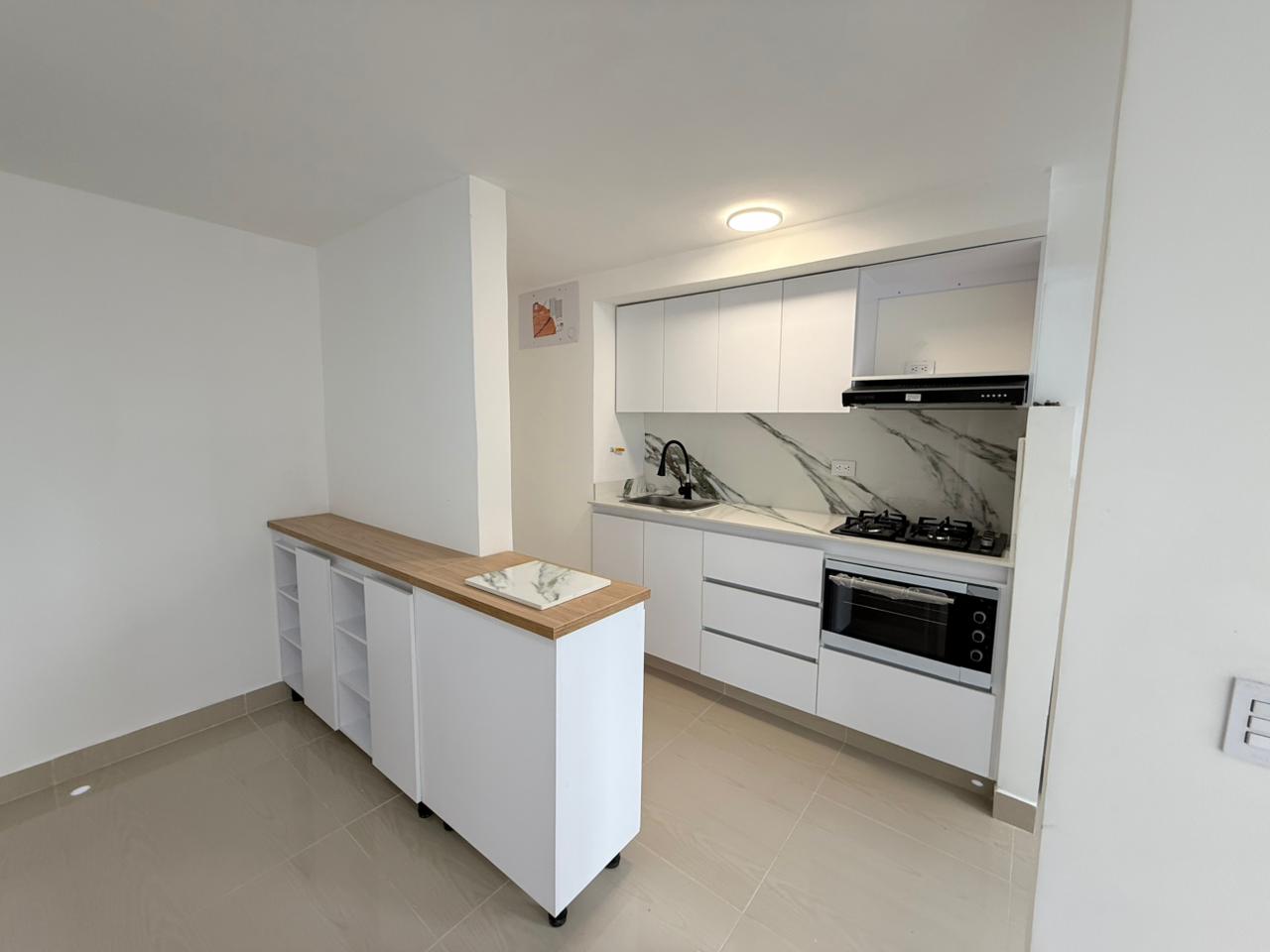 Precioso apartamento para estrenar. Cuenta con 2 alcobas más área de estudio, sala, comedor, cocina integral y área de ropas. Apartamento con buena iluminación natural. Ubicado en un tercer piso en edificio con ascensores, piscina, zona gimnasio y con todas las comodidades (aún no han sido entregadas las áreas comunes). Zona de parqueo exterior, demarcado.